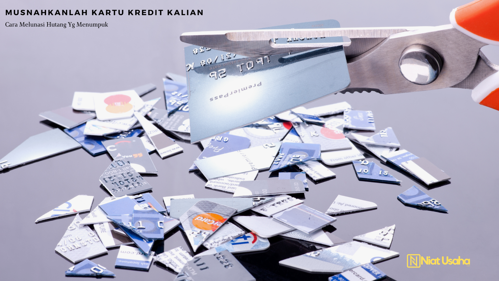 Apabila salah satu sumber hutang kalian adalah kartu kredit maka sudah waktunya kalian untuk menghancurkan kartu kredit tersebut. Guntinglah kartu kredit kalian.